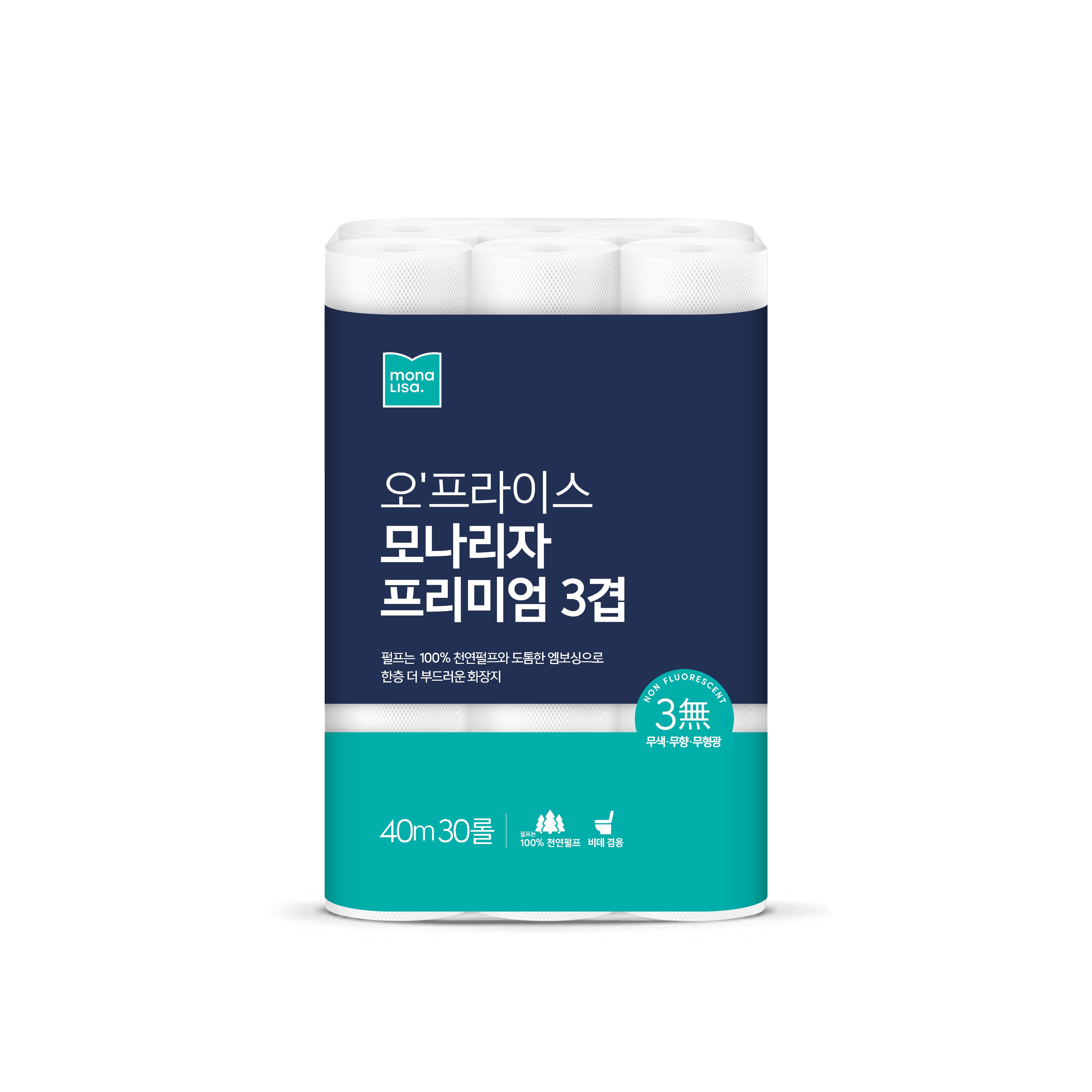 오프라이스 모나리자 프리미엄 3겹 화장지 40m*30롤, 1개[20,900원]
