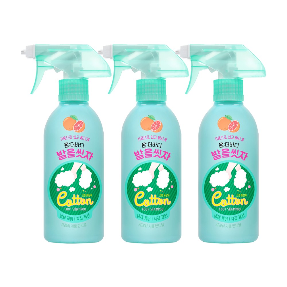 온더바디 발을씻자 코튼 풋샴푸 프레쉬 자몽 민트향, 385ml, 3개