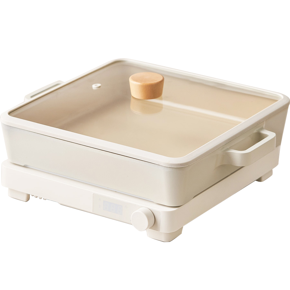 네오플램 피카 사각 전골팬 + 사각 다이얼 인덕션 세트, 오프화이트샌드, 피카 사각 전골팬 + 피카 사각 다이얼 인덕션