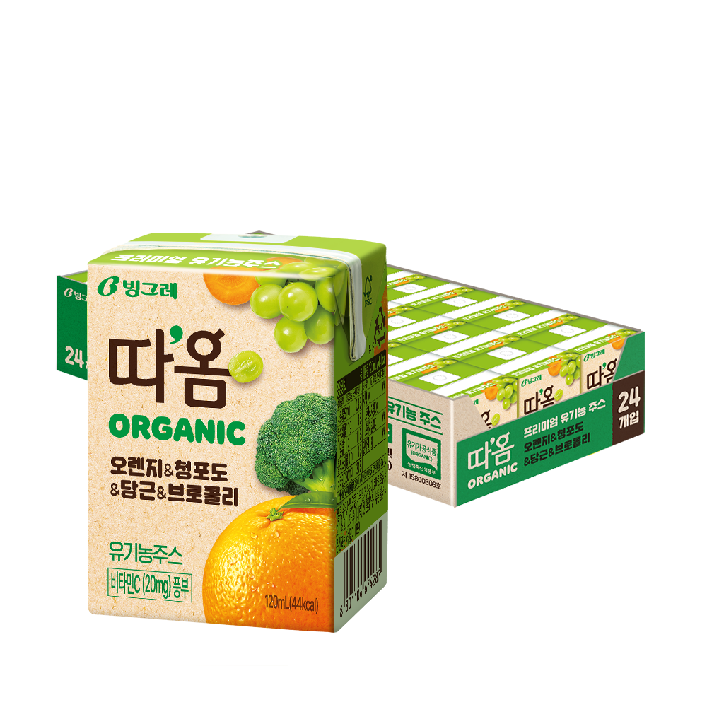 따옴 Organic 유기농 주스 오렌지 & 청포도 & 당근 & 브로콜리, 120ml, 24개