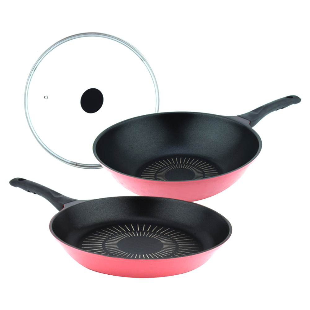 키친아트 본 핑크 후라이팬 세트, 프라이팬 + 궁중팬 + 뚜껑(28cm)
