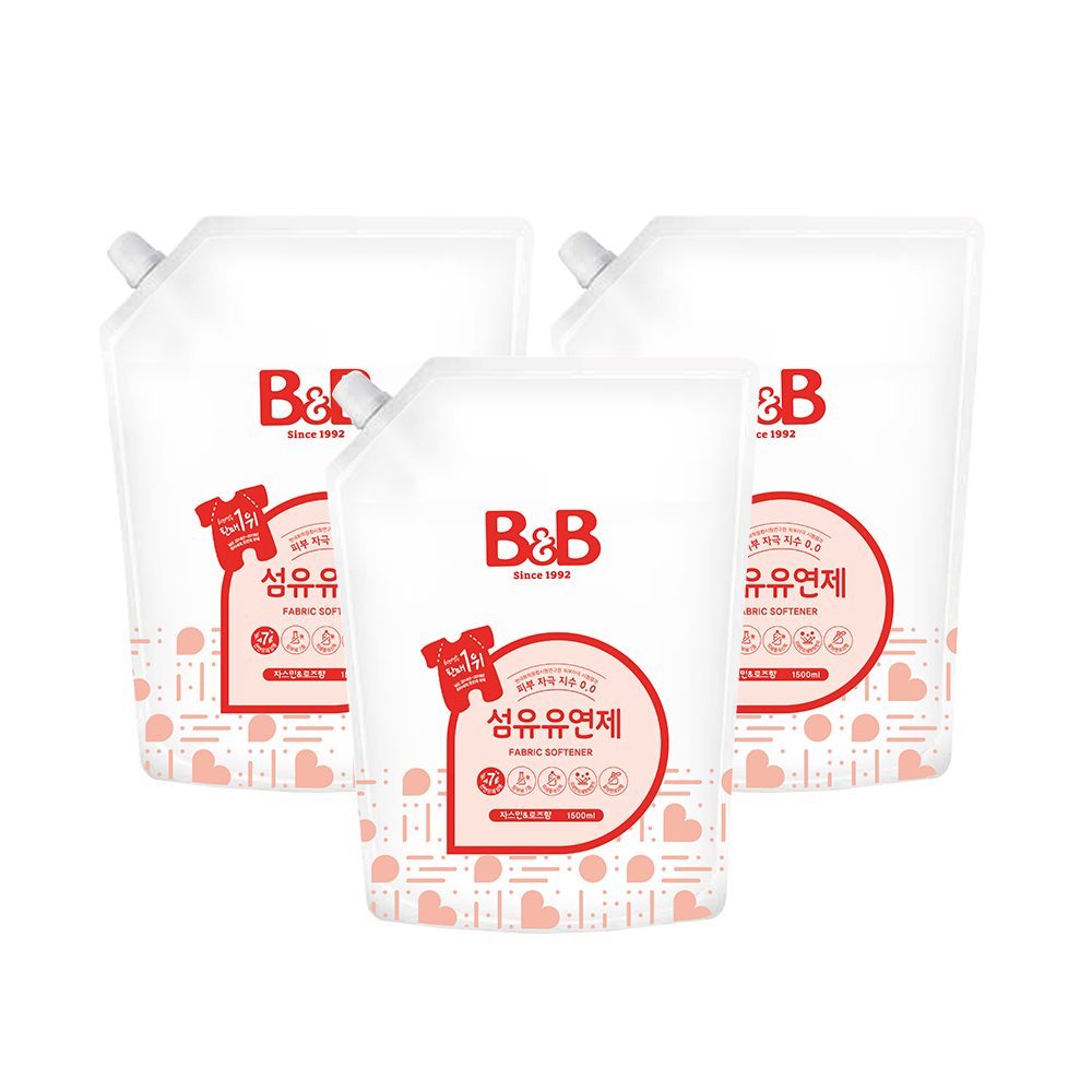 비앤비 섬유유연제 자스민 앤 로즈 리필, 1500ml, 3개[11,700원]