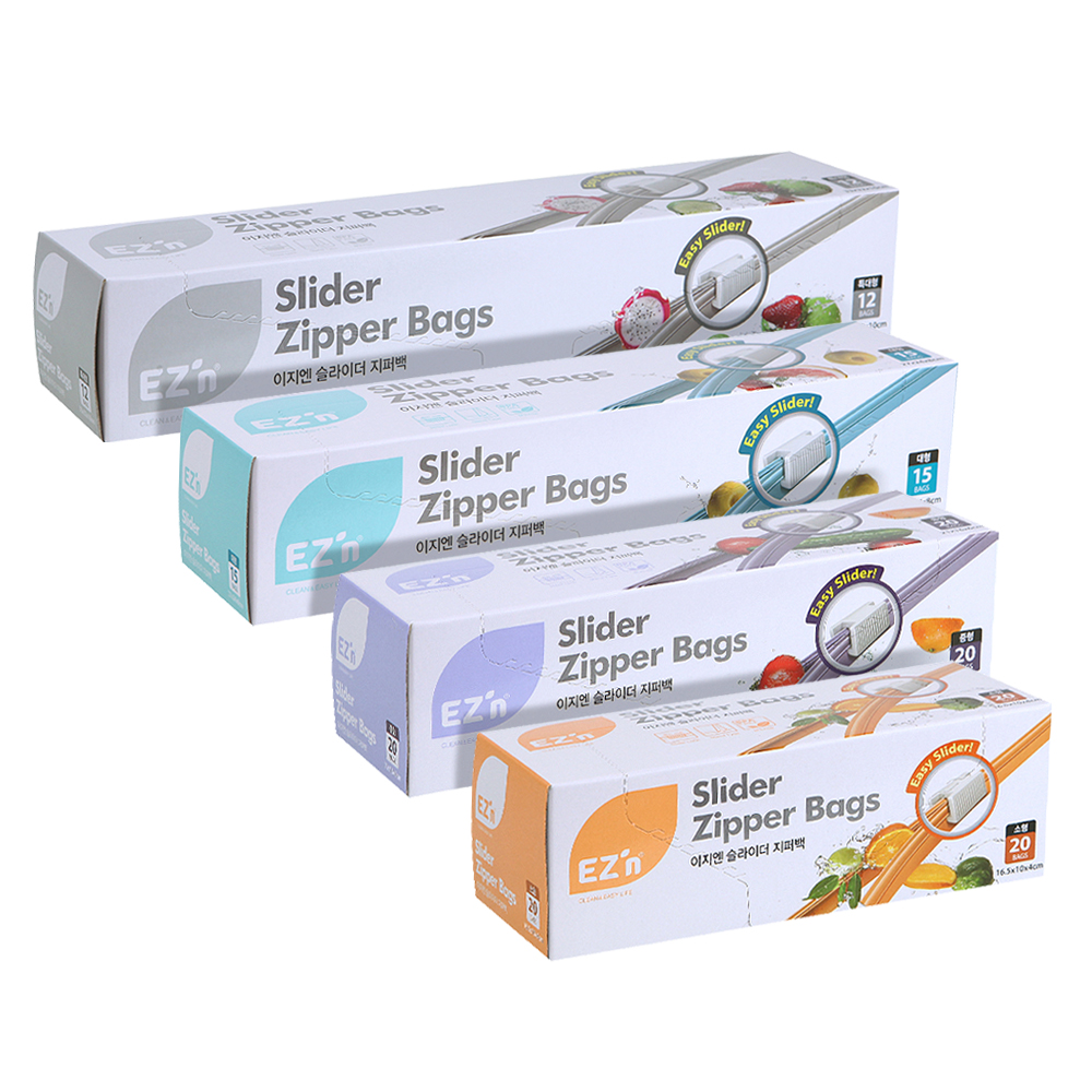 이지엔 슬라이더 지퍼백 특대형 12p + 대형 15p + 중형 20p + 소형 20p 세트, 1세트[11,900원]
