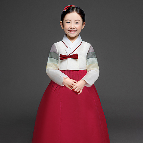 금동이 여빨강사색동 여아용 아동한복세트 AW161