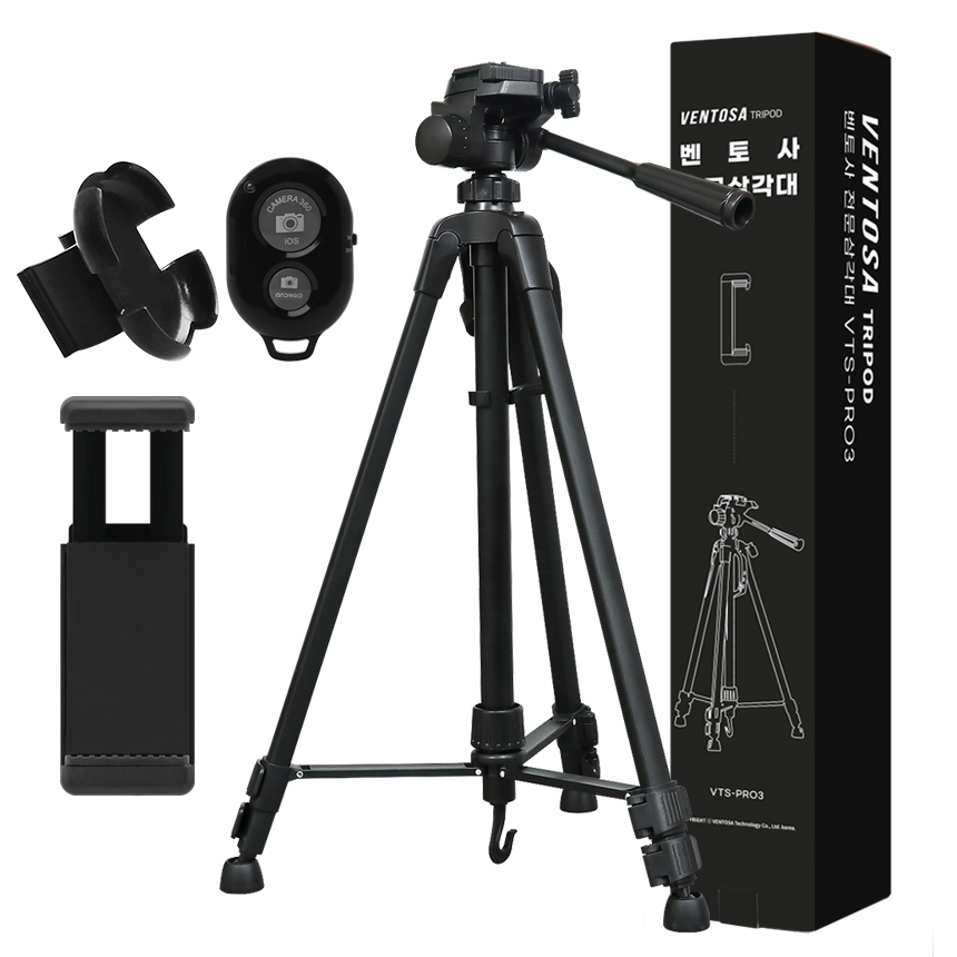 벤토사 전문가용 미러리스 & DSLR & 스마트폰 겸용 3단 삼각대 + 블루투스 리모컨 + 리모컨 홀더 세트, VTS-PRO3 구경하러가기