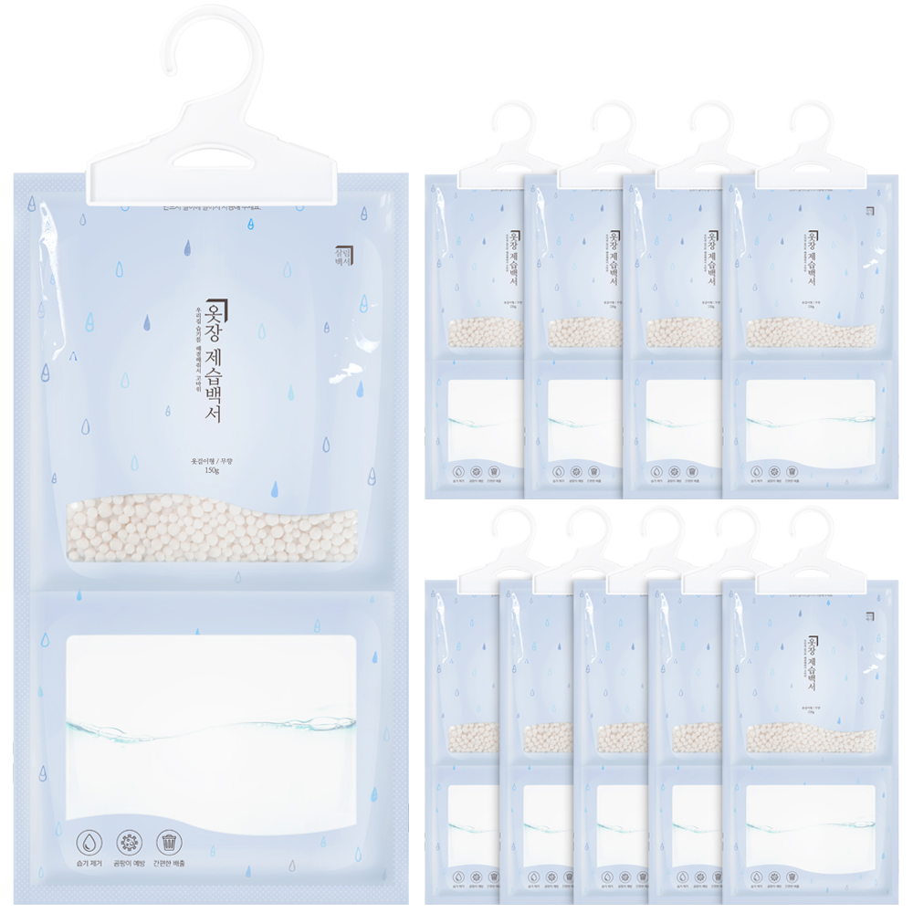 살림백서 옷장 제습백서 옷걸이형 제습제 본품, 150g, 10개[13,900원]